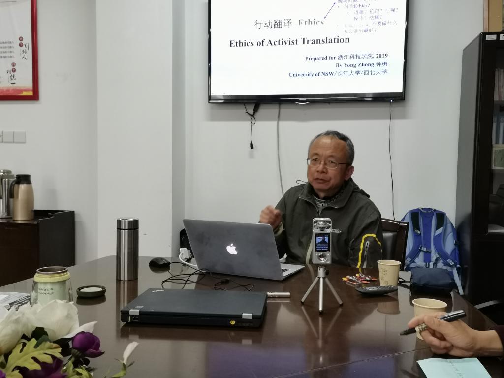12月6日(周五)下午,应外国语学院/三级片 的邀请,新南威尔士大学钟勇教授在闻理园A3-306作了题为“行动翻译操守:基于三个个案的分析”的主题讲座,三级片 翻译研究所成员和英语专业学生参加了此次讲座,讲座由外国语学院/三级片 院长朱吉梅教授主持。