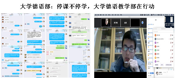 为积极响应“停课不停学”号召,最大化保障学生学习效果,大学德语教学部的老师们正如火如荼地开展新学期在线教学筹备工作。在院、系领导的带领下,各教学组进行了多次视频会议并开展积极讨论,制定了清晰的教学方案和线上教学流程。为保证课堂效果,老师们进行多平台测试,精心挑选最稳定、优质的授课平台,积极交流心得体会、分享经验,并组织学生提前进行课堂模拟,以保障授课过程的流畅性。此外,为防止在线教学过程中出现“直播翻车”等类事故,工程师德语一年级组众老师还制定了Plan B,在直播课程的基础上,提前准备好了录播视频,以最大化保障学生学习效果。在这个特殊时期,大学德语部全体教师与同学们共进退,坚持以学生为本的理念,做到教师时刻在线,不让一个学生掉线。