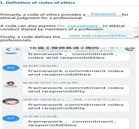从以上两位学生的反馈可以发现,线上教学需要师生间更多的互动。以下是我们在课程“工程师英语2”教学中的尝试,供其他教师借鉴参考。