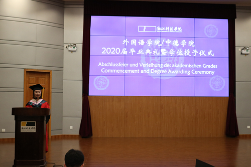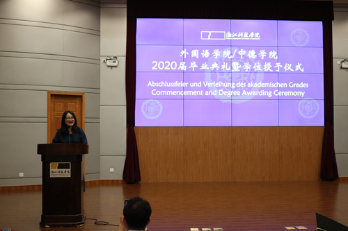 朱吉梅院长给2020届毕业生上了“最后一课”。她说,在93名2020届同学中,24名同学加入了中国共产党,4名同学荣获省优毕业生,11名同学荣获校优毕业生,3名同学拿到美国宾夕法尼亚大学、英国卡迪夫大学和德国哥廷根大学的硕士录取通知书,1名同学荣获2020年校卓越学子奖学金,为学院发展史画上了你们浓墨重彩的一笔。