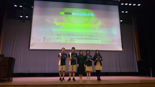 2018届校友代表潘苏婷学姐娓娓道来,与学弟学妹们分享了在校刻苦学习经历,并鼓励大家要大胆尝试,勿忘学业,磨练情商。防疫志愿者代表英语192班卢姜昊学长发起呼吁,号召同学们勇担社会责任,耀浙科学子之风范。前辈光芒闪耀,后辈理应自强。