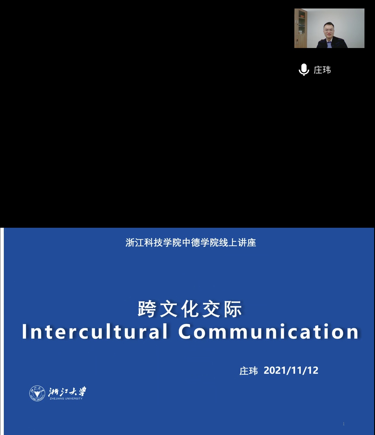 2021年11月12日,浙江大学外语学院德国学研究所 “百人计划”研究员、博士生导师庄玮副教授作客三级片 中德荟讲坛,云端开讲题为“跨文化言语交际﹑非言语交际和跨文化能力模型”的学术报告。三级片 全体德语教师、德语专业高年级学生聆听了报告。讲座由三级片 德语系主任林方副教授主持。
