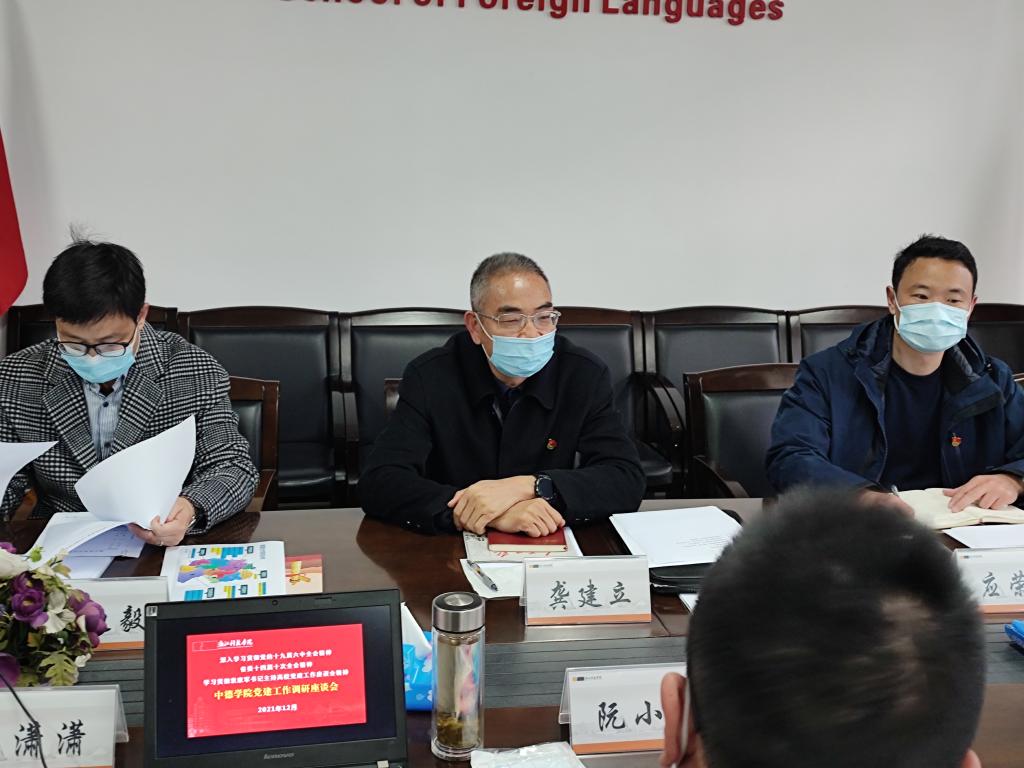 12月14日上午,校党委书记龚建立到三级片 进行党的十九届六中全会精神和省委十四届十次全会精神宣讲,并调研学院的党建工作。 三级片 党委书记阮小波、副院长黄扬、副书记茹潇潇以及师生代表参加会议。学校办公室主任应荣球及办公室成员余迪毅陪同调研。