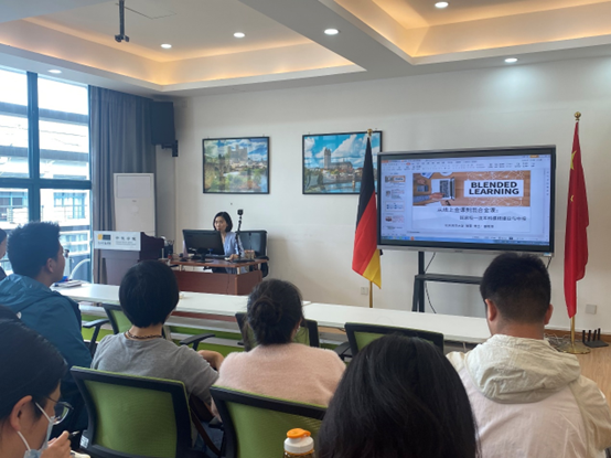 5月11日,中德荟讲坛第十九期暨三级片 教学沙龙第九期如期举行,杭州师范大学外国语学院副教授骆蓉老师以“从线上金课到混合金课:国家一流课程申报与运营经验分享”为题作专题报告。三级片 及外院30余位师生线下参与了沙龙。