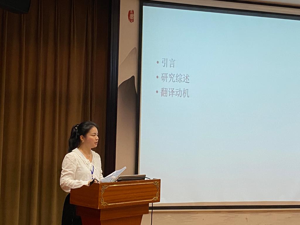 11月5日,陈巧博士参加了“现代化先行语境下的浙江翻译文学”学术研讨会并作了题为《文化翻译观视角下《子夜》德译本翻译策略探究》的报告。1938年,茅盾的《子夜》由德国汉学家弗朗茨·库恩翻译出版。该版本是茅盾的长篇小说首次被译成外文,对茅盾文学作品在世界的译介与研究有着十分重要的意义。本报告以该译本为研究对象,首先介绍了研究现状,然后简要介绍了译者翻译动机,接下来从文化翻译观视角出发,从生态文化专有项、物质文化专有项、社会文化专有项、宗教文化专有项和语言文化专有项这五个方面具体分析译者所采取的翻译策略。