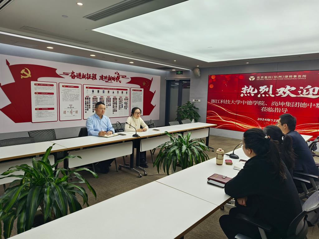 杨茜主任代表律所热情欢迎浙科大一行的到来,表示律所全球化的业务布局和发展模式期待得到来自高校的人才支持,她详细介绍了盈科律所的成长发展历史和业务领域范畴,以及目前对新兴市场的开拓情况,表示欧洲特别是德国市场将是律所接下来的重点开发目标。茹潇潇对学院基本情况做了介绍,表达了学院在“德语+”复合型人才培养上的设想和规划,希望把地方政府部门和行业企业资源整合到一起,联合政校企三方开展从进口到出口端全链条式人才培养合作,目标打造出一个独具特色的小语种专业人才培养样板工程。双方就下一步如何具体推动落实交换了想法和意见。