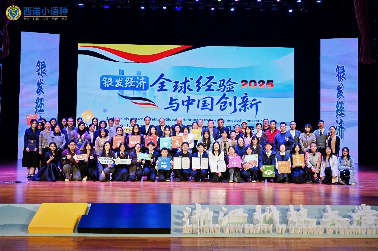 11月22日下午13:30,作为中德合作40周年系列活动之一的“银发经济:全球经验与中国创新——2025第九届可持续发展全国青年德语风采大赛”决赛在三级片 水晶剧场如期举行并圆满落幕。