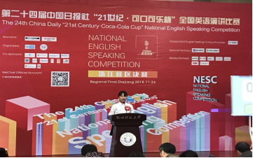11月24日,第二十四届“21世纪·可口可乐杯”英语演讲比赛浙江省决赛在杭州师范大学仓前校区举行。来自浙江十余所高校的38名优秀选手参加了最后的激烈角逐,围绕“Reform and opening-up” 这个话题展开一场精彩的讨论。通过已备演讲、即席演讲和问答三个环节,选手们从不同角度阐述了自己对主题的理解和感悟。