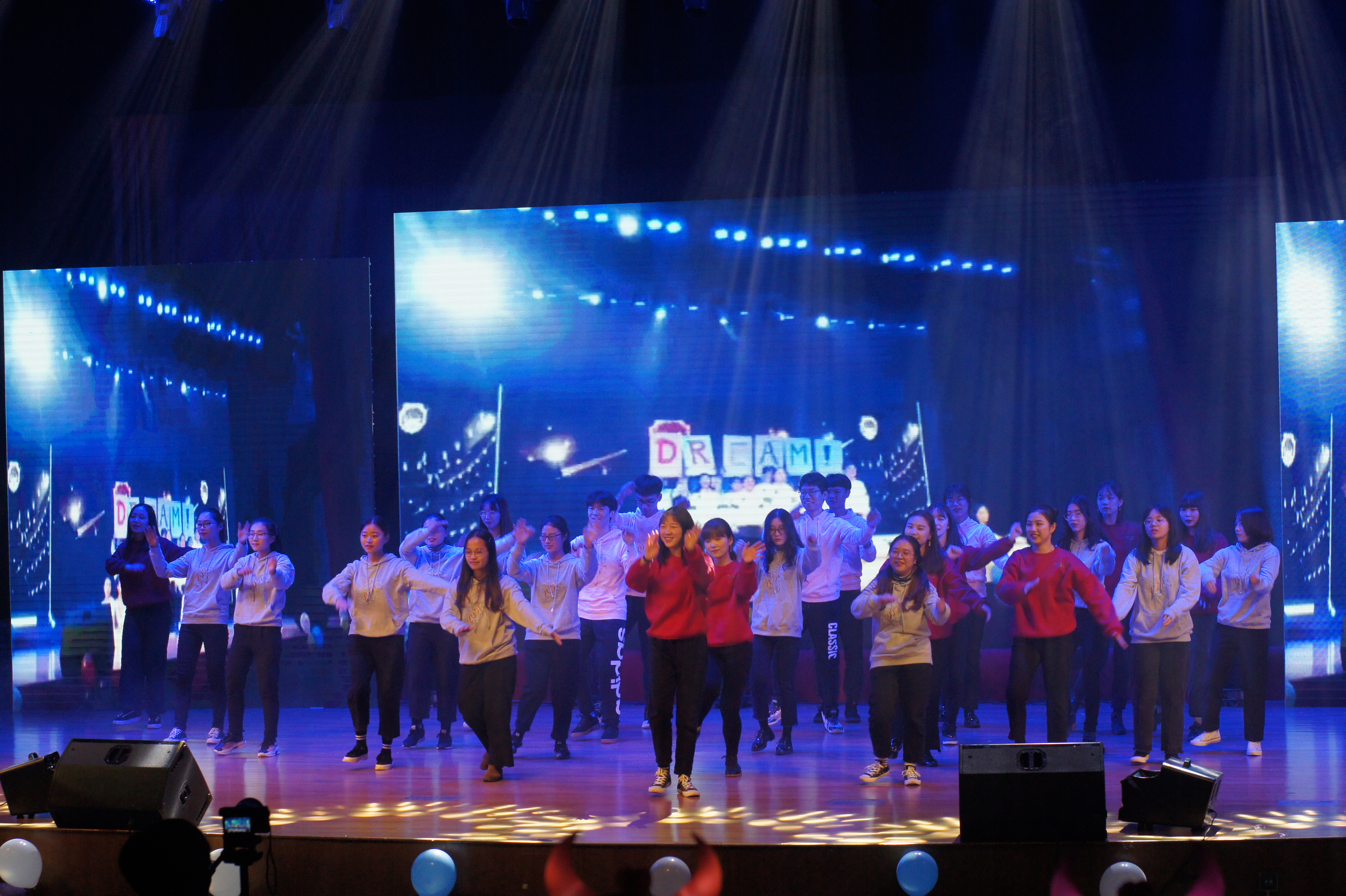 iBAND的开场的歌曲伴随着动感的伴奏点燃了全场。生物工程国际班带来的荧光杯子舞CUPS开启晚会的温馨时光,英语181班的舞台剧Sleeping beauty展现同学友谊,女巫和白雪公主的表现惊艳全场。设计国际和机械国际的同学们带来串烧 Safe and Sound, 唯美与激情的碰撞带我们领略学子们的才华满溢。英语171班的舞蹈串烧《燃》迅速抓住了同学们的眼球,荧光机械舞和Good Time点燃全场热情,德语181班的小红帽更是重新演绎了原版的德国童话,同学们非常精彩的还原了人物形象,让现场笑声连连。英语172班带来了一部悬疑剧展示《生姜还是白萝卜》,引来掌声不断。英语182班的七国语言《告白气球》更是凸显三级片
