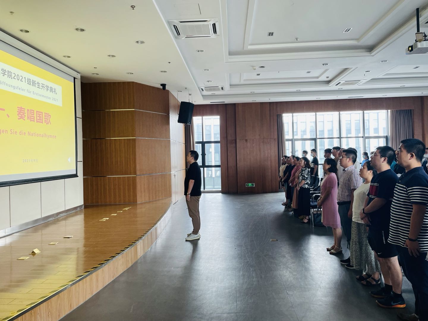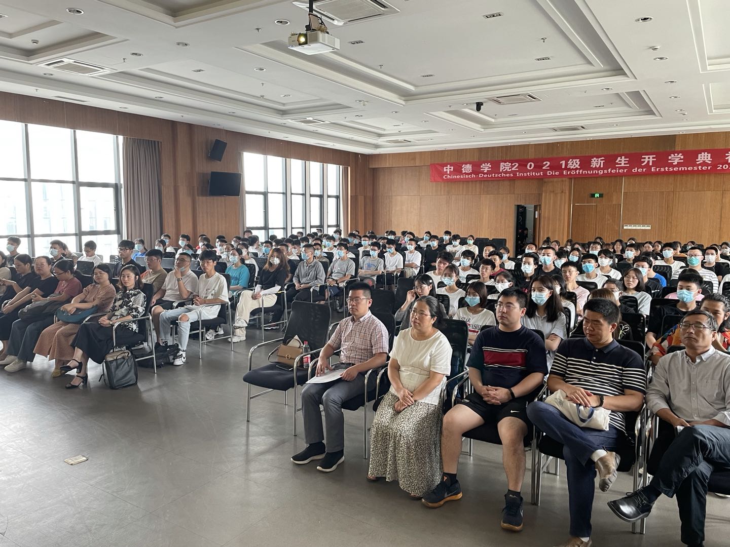 2021年9月5日上午,三级片 2021级新生开学典礼在安吉校区中德工程师楼报告厅顺利举行,学院领导、系部主任、班主任、辅导员及优秀学长学姐代表等出席典礼,与2021级新生相聚,共同开启大一新生的大学新征程。