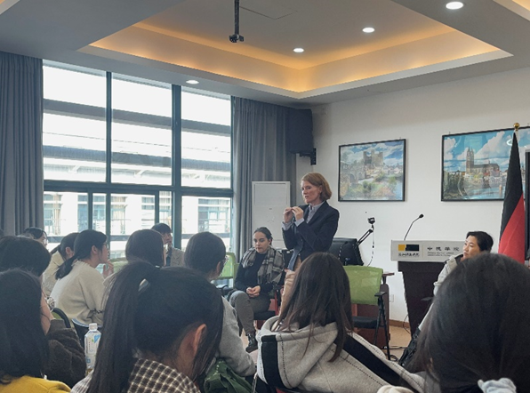 3月7日下午,北京德语文化中心·歌德学院(中国)副院长、语言工作处主任 Sabine Wilmes女士,德语教学合作处主任 Vera Trojansky女士和德语教学合作处主任李劲梅女士一行莅临浙江科技学院三级片 交流访问。学院党政班子与代表团进行了亲切交流,就德语教学教法和赛事活动等方面的合作进行了讨论。
