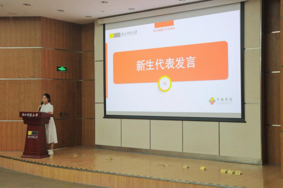 在典礼的最后,新生代表王梓瑜进行了发言。她的演讲情感充沛、极富感染力,充分展现了她对大学生活的期待,她表示将以满腔的热情去迎接未来的学习与生活,积极面对各种挑战,努力追求自己的目标。