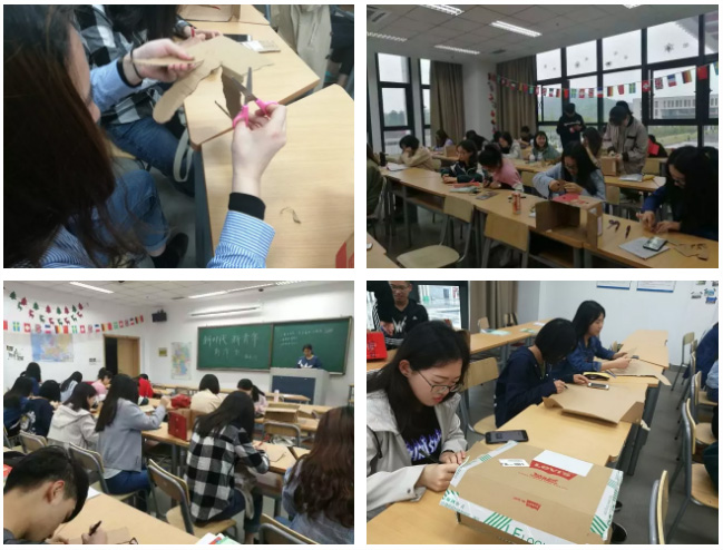 首先,我们提前一周呼吁大家收集身边的废弃快递纸箱,并带至班会活动中,同学们在寝室里收集了一星期的快递所用的箱子。