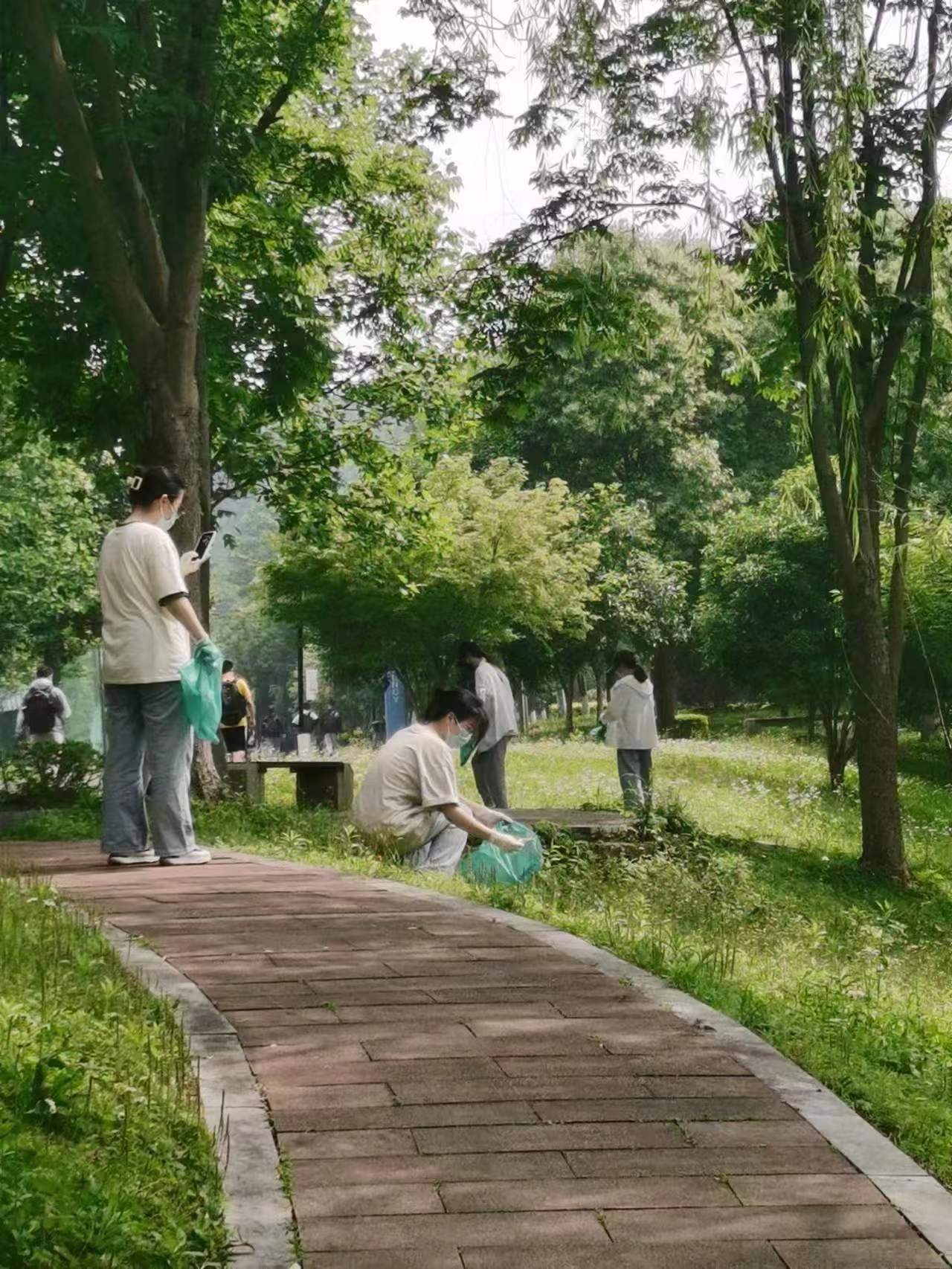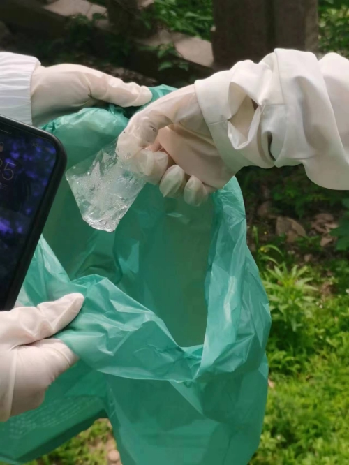 本次主题党日活动分成四个小组,分别在操场以及西蜜湖一带清捡垃圾。党员同学们戴一次性手套,手持垃圾袋等工具,徒手捡起了草坪中的塑料袋、烟蒂、纸巾以及饮料瓶等垃圾大家分工明确,相互配合,每个小组都将拾到的垃圾进行分类,活动结束后统一进垃圾箱。
