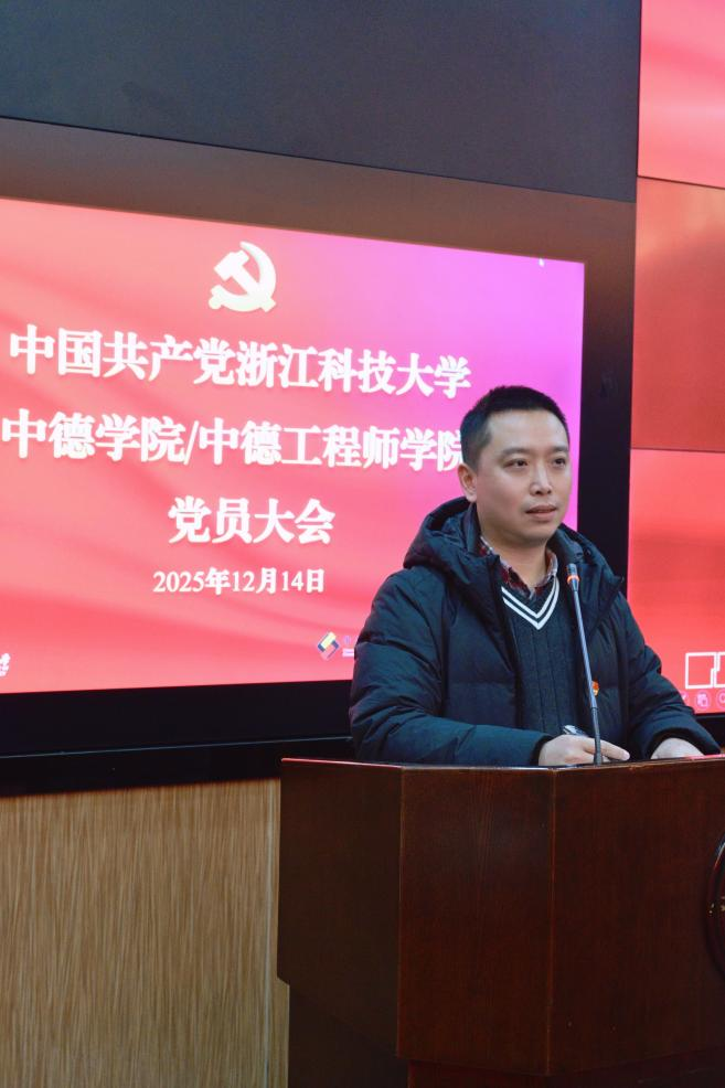 20251214,中国共产党三级片 /中德工程师学院党员大会在庄重而热烈的氛围中隆重召开。学院全体正式党员参加会议,校纪检监察室周佳灵同志到会监督指导。大会由学院党委副书记李成炜主持。
