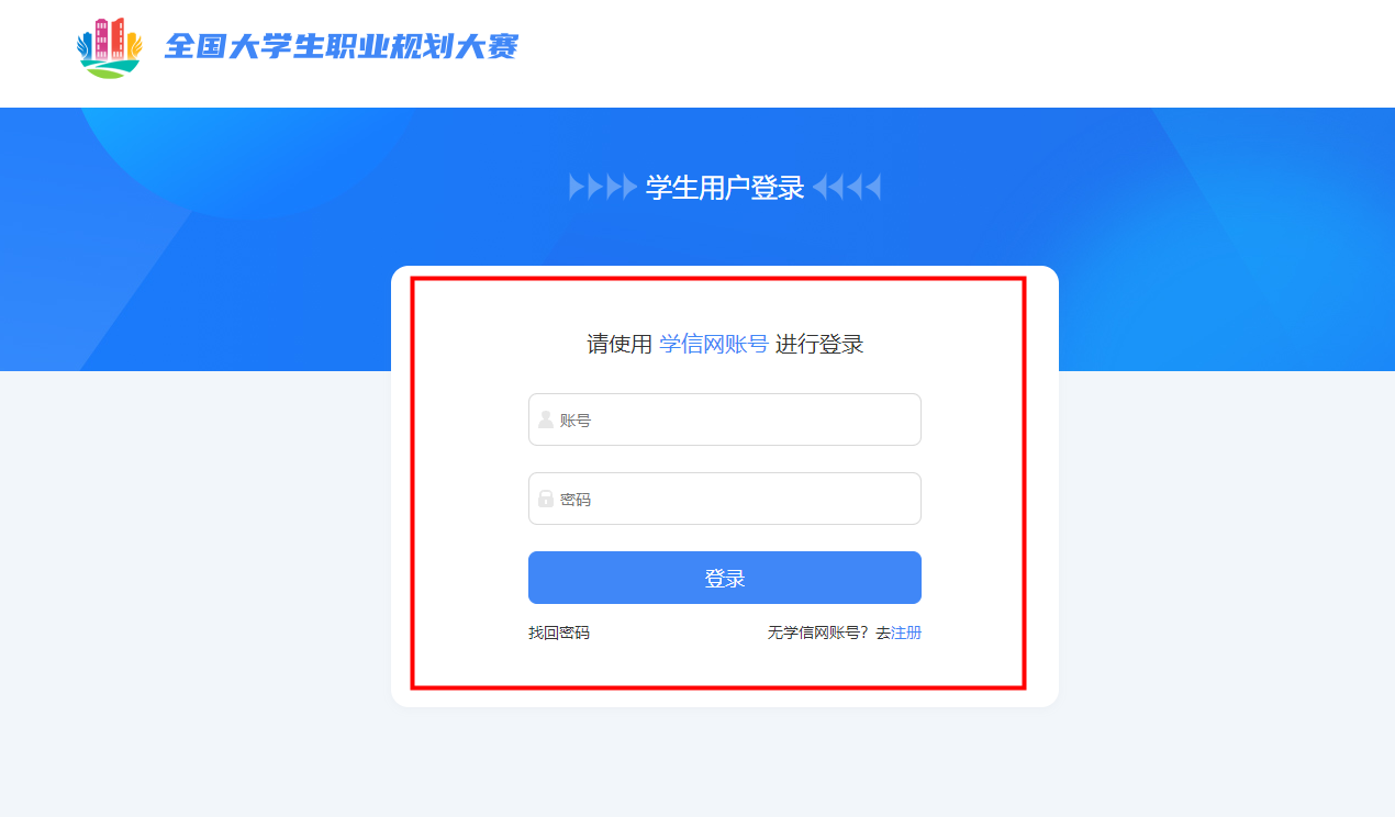 参赛选手平台主页-登录-选择学生用户身份-使用学信网账号登录。